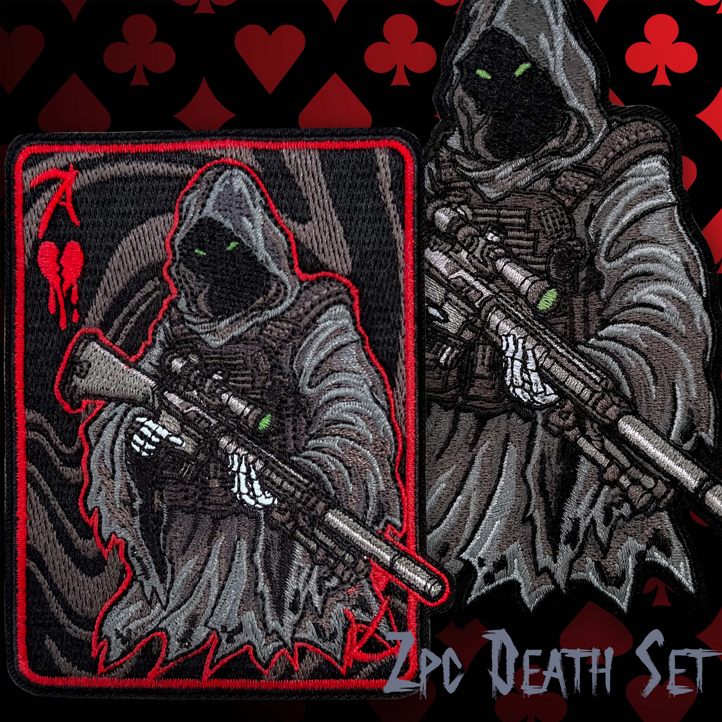 - 2pc Death Set includes, 1x Tac Reaper and 1x Heart Reaper Death Card